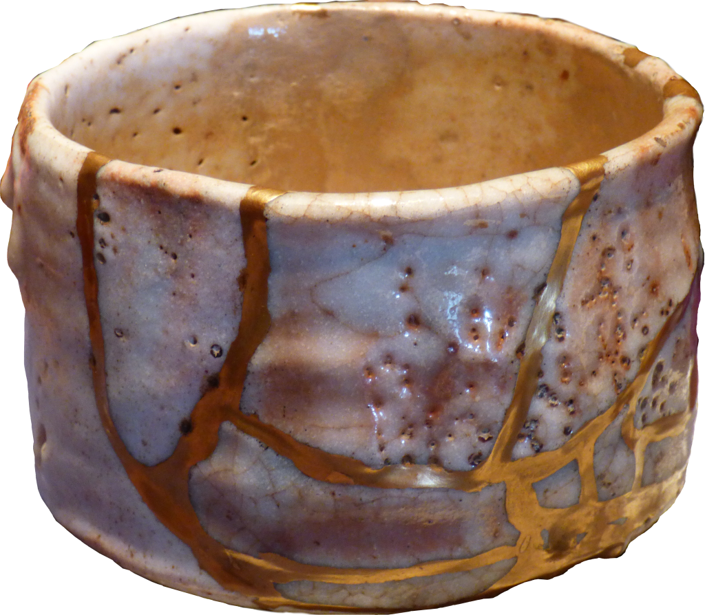 Kintsugi uses all our senses and cannot be rushed. Materials and replacement pieces are carefully selected to match the inherent value of the broken ceramics. The environment is as vital to the repair as the techniques are. Time is taken to indulge mindfully in tea ceremonies and shared meals while the mended pieces are baking. Restoration is completed using distinctive Japanese lacquer and 24-karat gold powder. The finished piece is often stronger than the original and has a distinctive appearance reflecting its unique history.